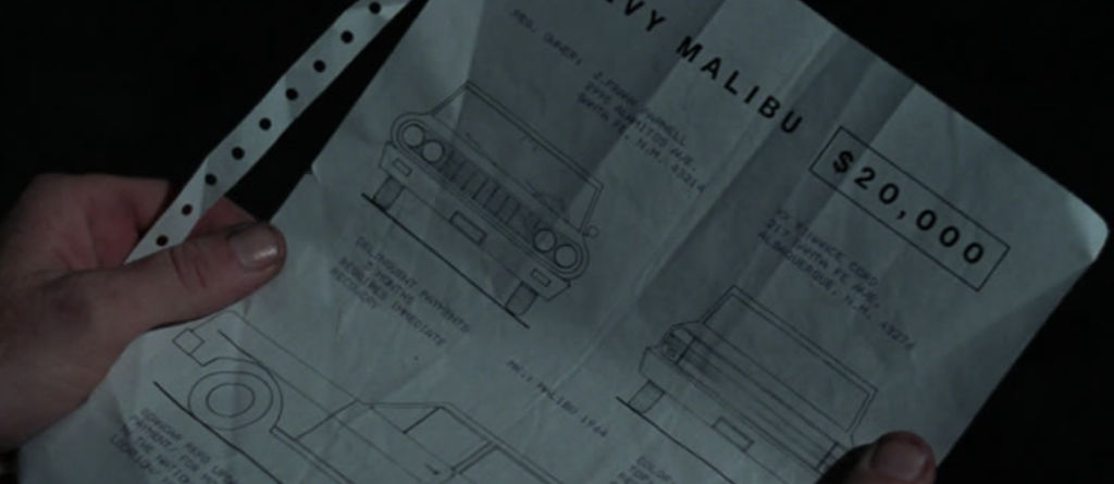 Este film de Alex Cox recuerda por varios motivos a la posterior joyita de John Carpenter They live, en donde un obrero descubre por medio de unos lentes de sol que los humanos no están solos en la tierra. En Repo Man el objeto es otro. El gran elemento de suspenso y motor de acción con el cual confluyen todas las historias, es un auto Chevy Malibú.