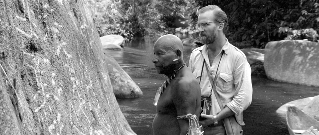 Durante toda la historia humana ha existido un constante trabajo intelectual por parte de diferentes civilizaciones para aprender a hablar el idioma del otro. Esto, que es tan obvio, suele “solucionarse” con un personaje secundario que las hace de traductor y que únicamente está ahí para hacer más verosímil la historia. Aquí no. Hubo preparación para abordar la comunicación entre las partes, con un debido aprendizaje por parte del elenco que dio como resultado un guión que desarrolla un estereotipo diferente del blanco al que estamos acostumbrados: ya no se trata del explotador, indolente y sádico, que se comunica por medio del látigo y privaciones (el que tan bien interpreta Klaus Kinski en las cintas de Werner Herzog); sino la de un hombre letrado, culto; que aprende el idioma en busca del conocimiento que permita perpetuar una cultura ya casi extinguida.